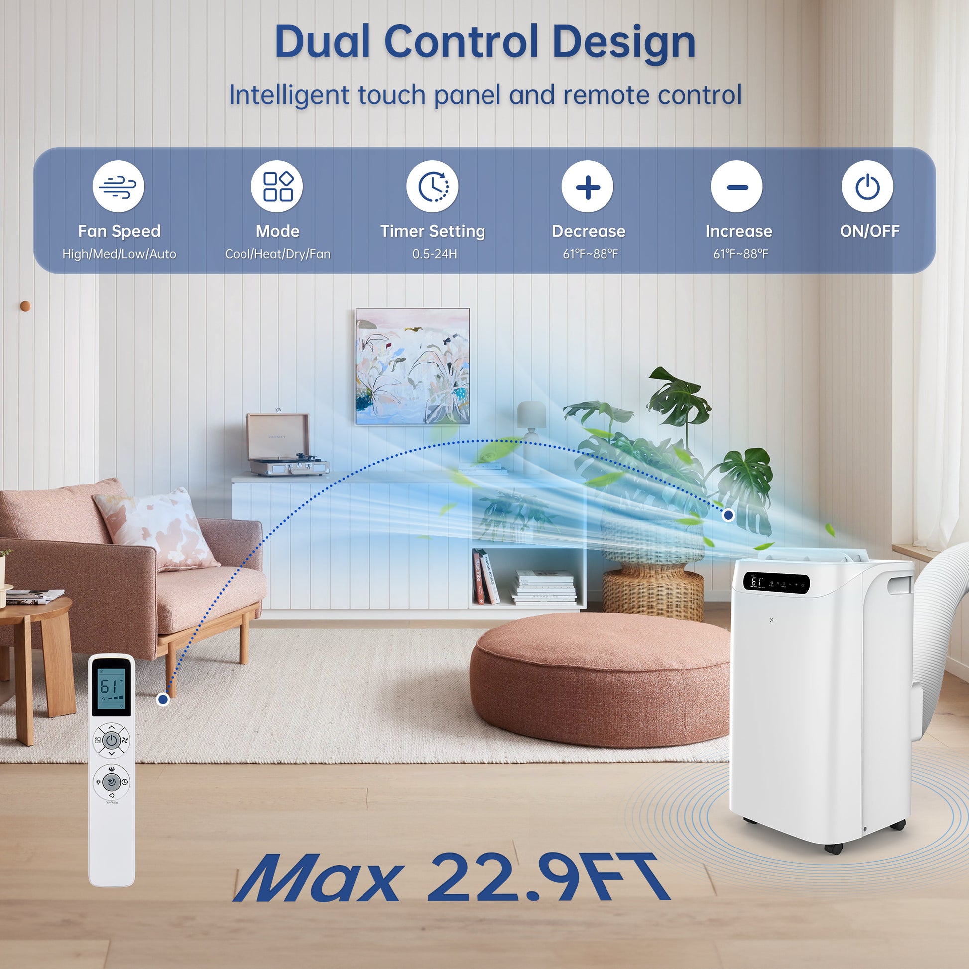 Agtana 10000BTU (14000 ASHRAE) Portable Air Conditioner and Heater Cools Room up 450 Sq. Ft., 4-in-1 Portable AC with Remote Control & DIY Window Kit