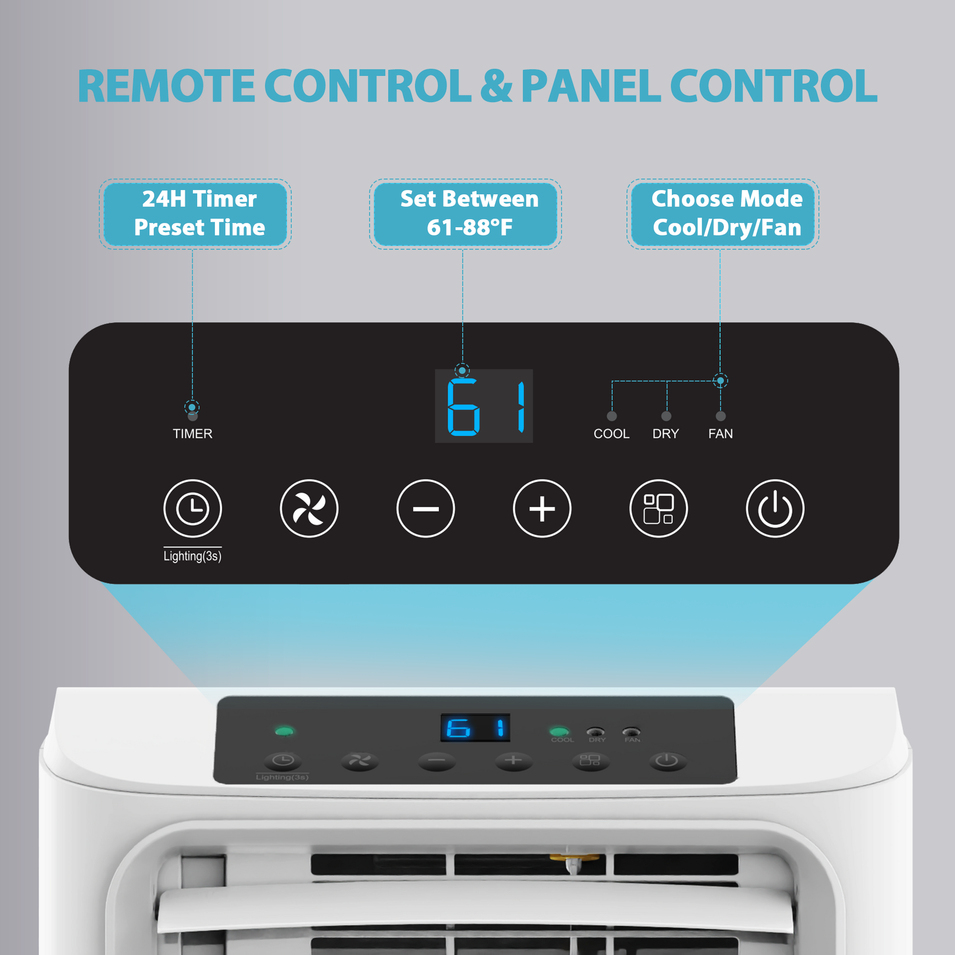 1. Con la potencia de enfriamiento de 10,000 BTU de Ashrae, el aire frío puede cubrir una habitación de hasta 300 pies cuadrados.