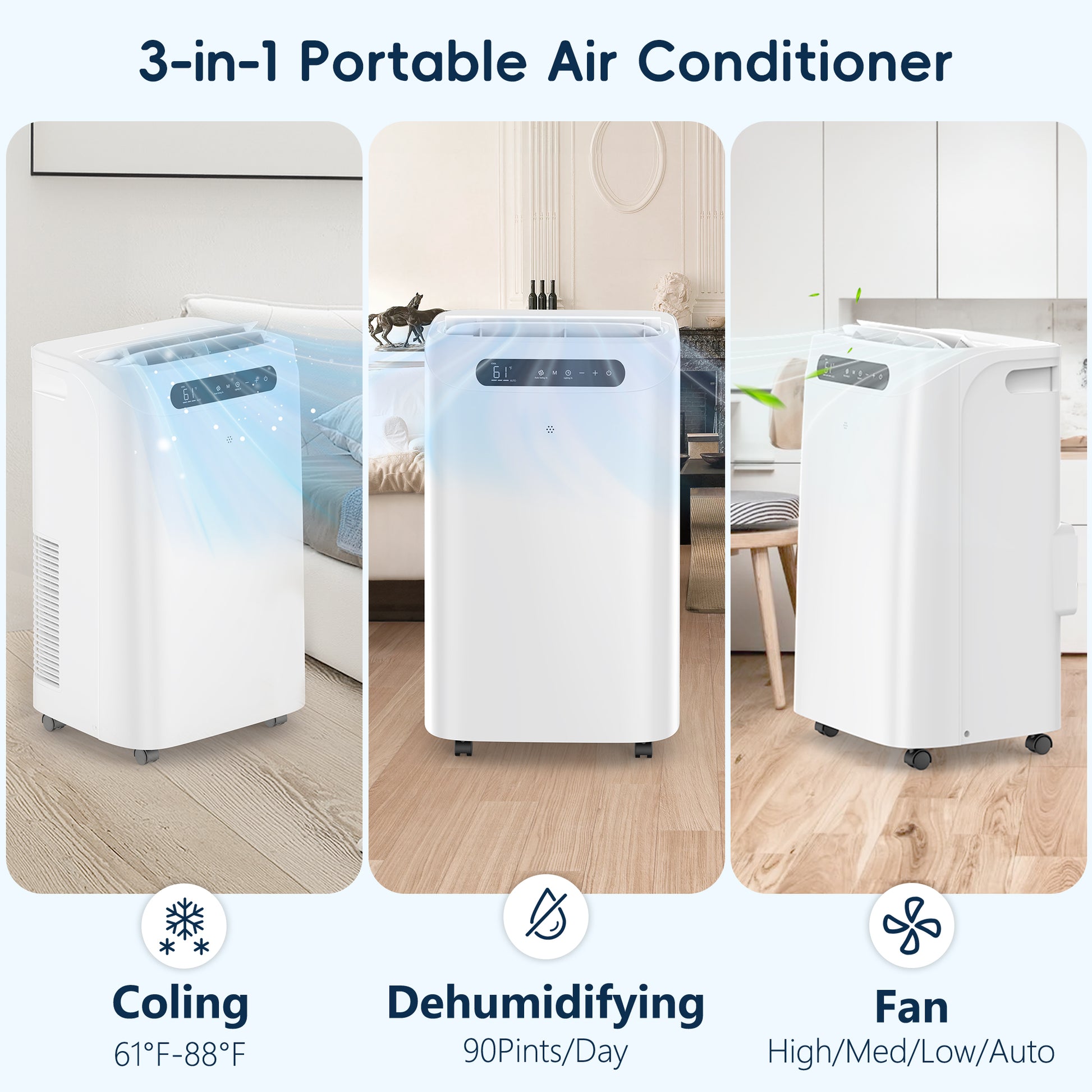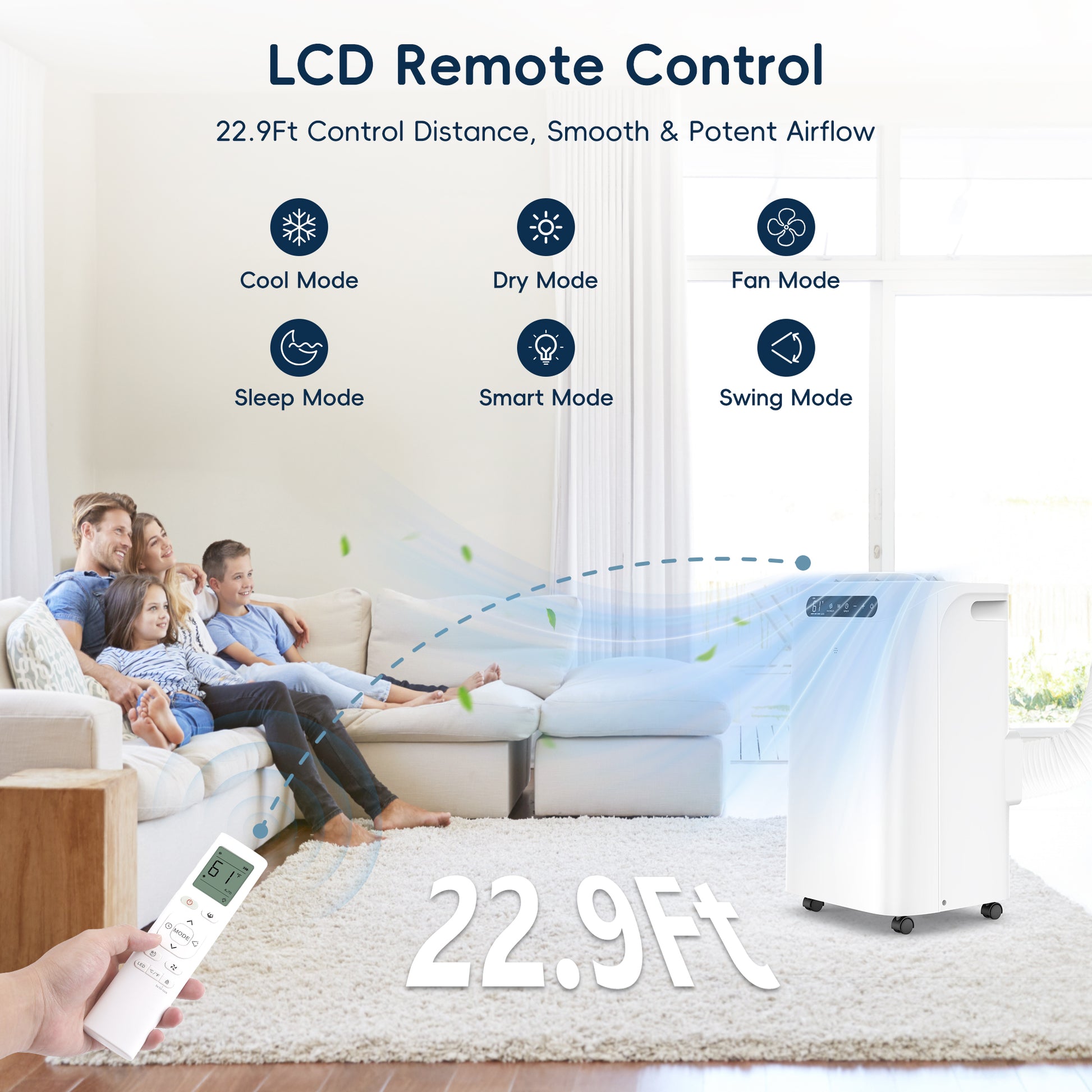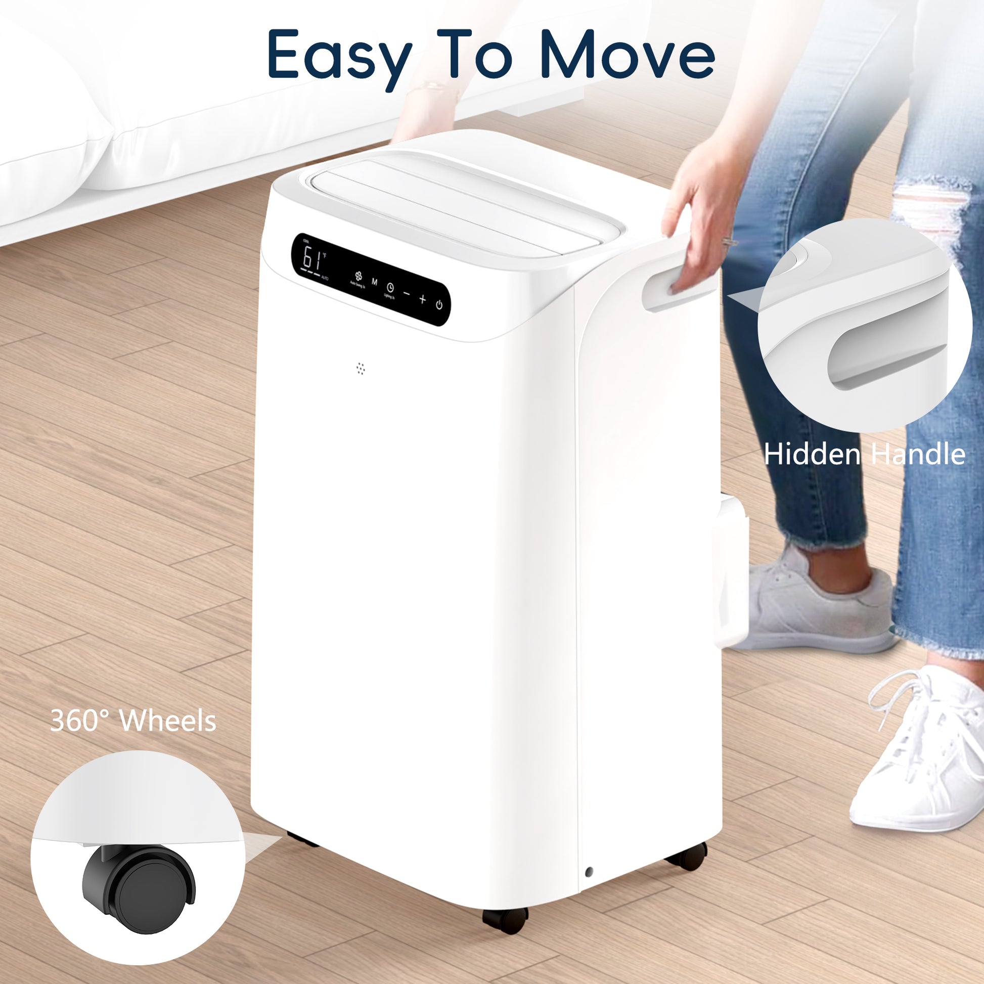 El aire acondicionado portátil Fosawd de 10,000 BTU (14,000 BTU ASHRAE) es perfecto para refrescarse durante los calurosos días de verano. Con sus tres configuraciones diferentes: aire acondicionado, deshumidificador y ventilador, seguro encontrará la que le proporcione el confort óptimo. Este aire acondicionado portátil es ideal para enfriar espacios de hasta 700 pies cuadrados, convirtiendo una casa mediana o grande, o un apartamento de una habitación, en un instante. El aire acondicionado portátil Fosawd cuenta con un temporizador programable de encendido y apagado de 24 horas con modo de suspensión para su comodidad. Además, su robusto diseño de cuatro ruedas le permite moverlo fácilmente de una habitación a otra. Además, incluye un kit de instalación rápida y sencilla en la ventana.