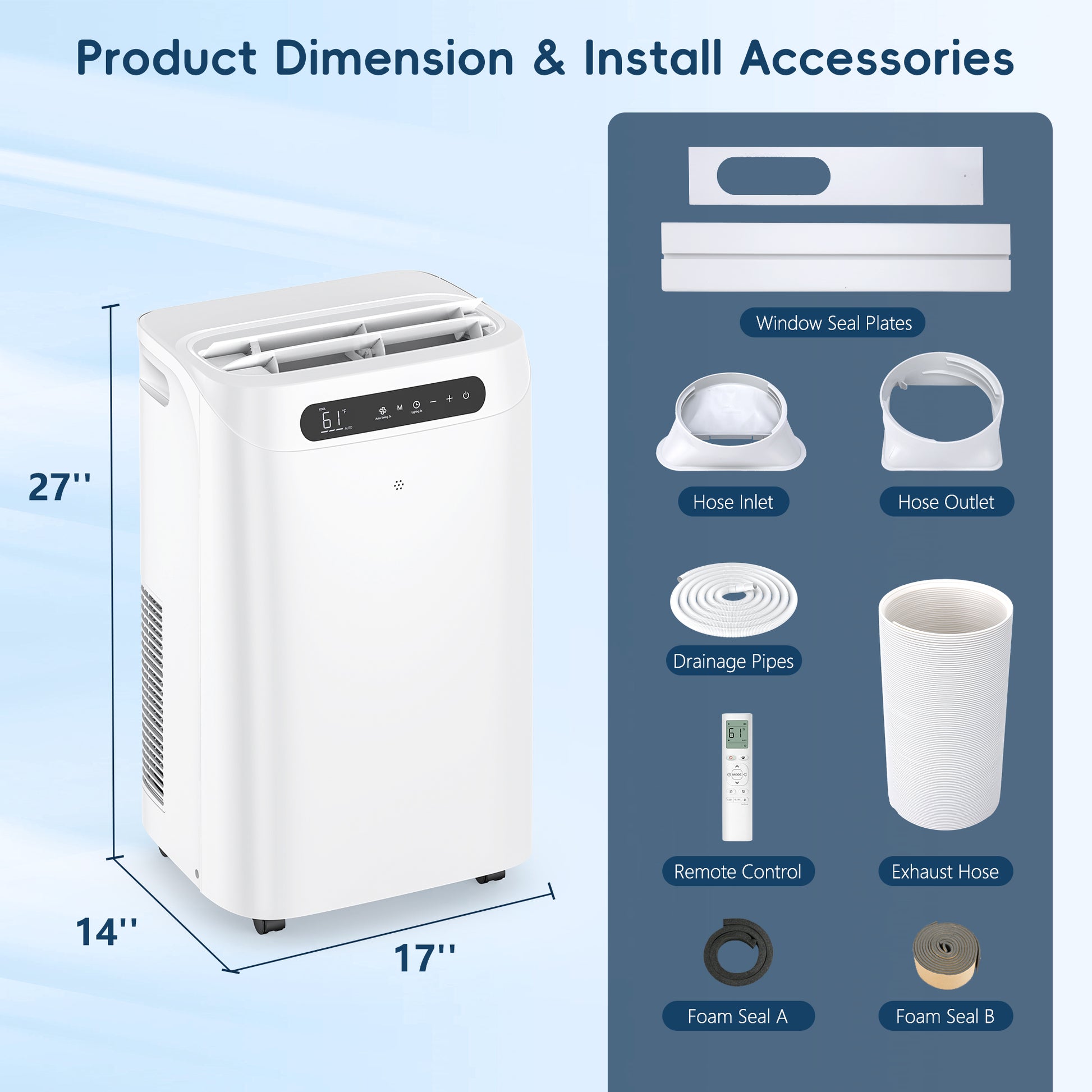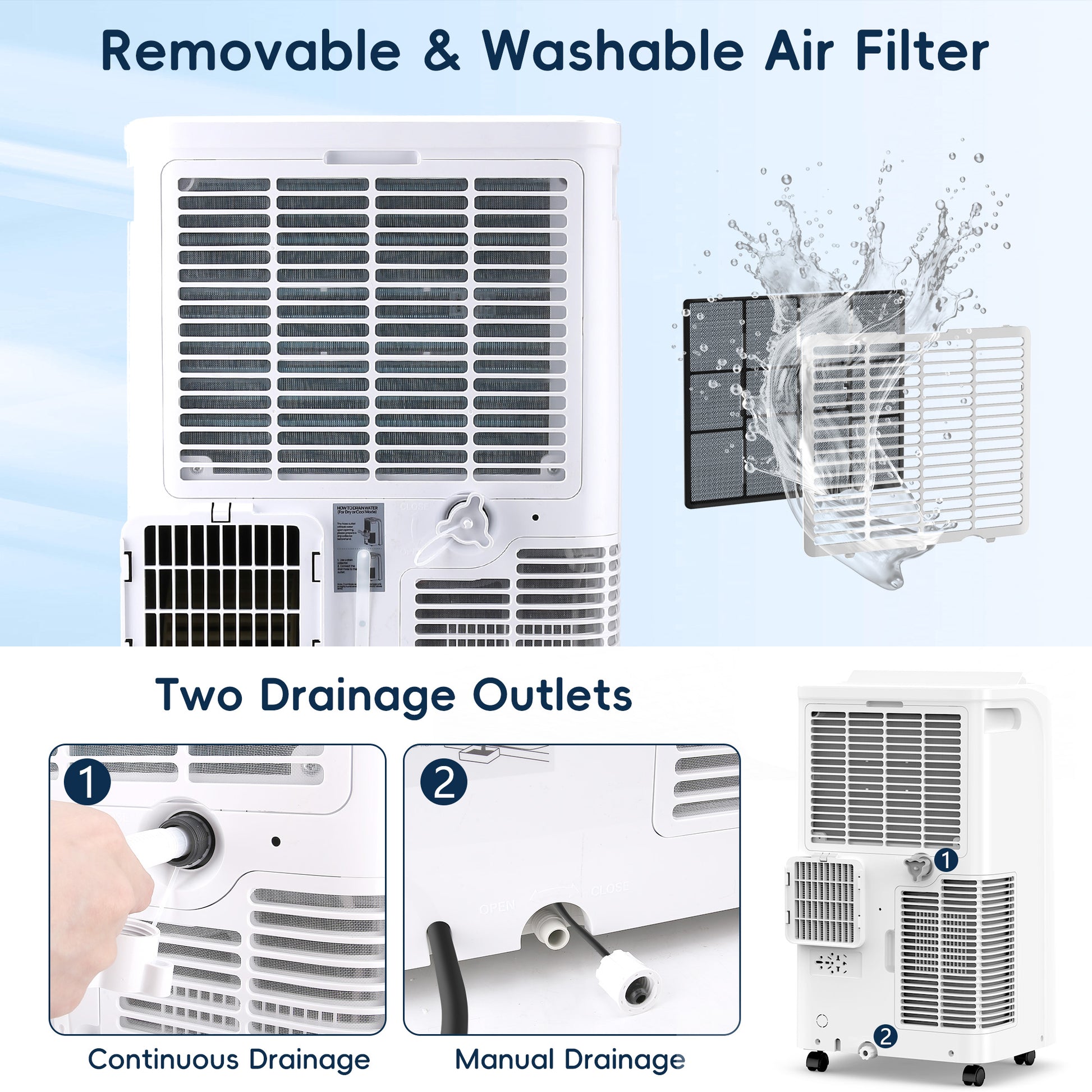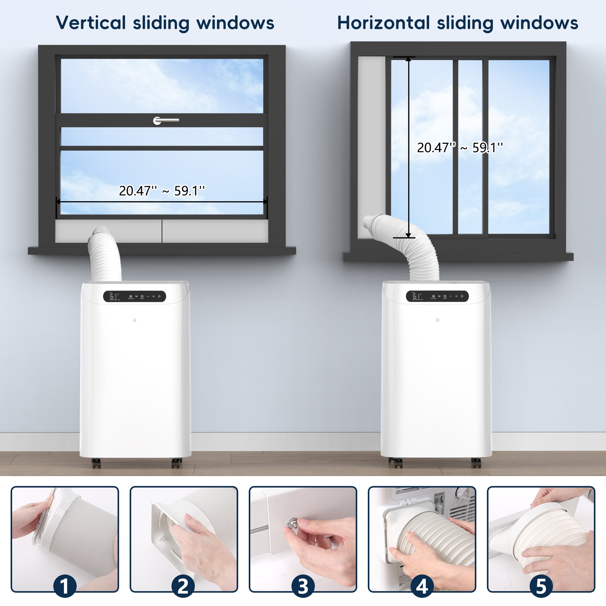 【 Fácil instalación y mantenimiento 】 El aire acondicionado portátil incluye un kit para ventana y accesorios, lo que facilita su instalación. Es compatible con ventanas correderas verticales u horizontales (rango de tamaño: 50,8 cm - 147,2 cm), y sus ruedas universales y asas portátiles facilitan su transporte. Además, el filtro extraíble y lavable facilita el mantenimiento.